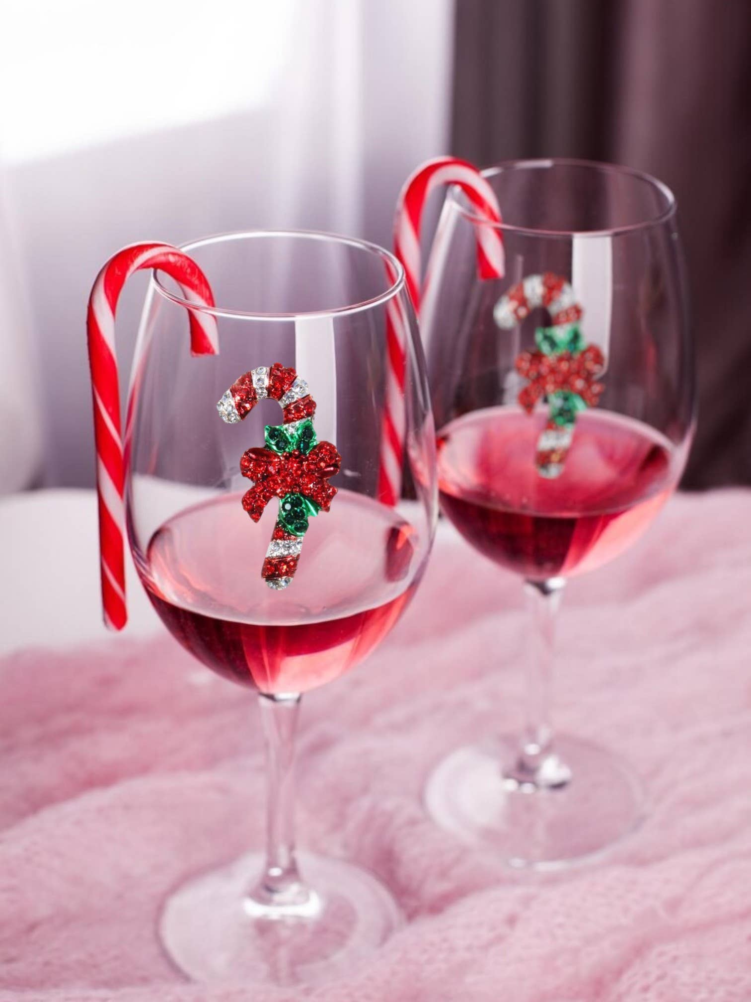 Candy Cane Christmas Holiday Jeweled Stemmed Wine Glass