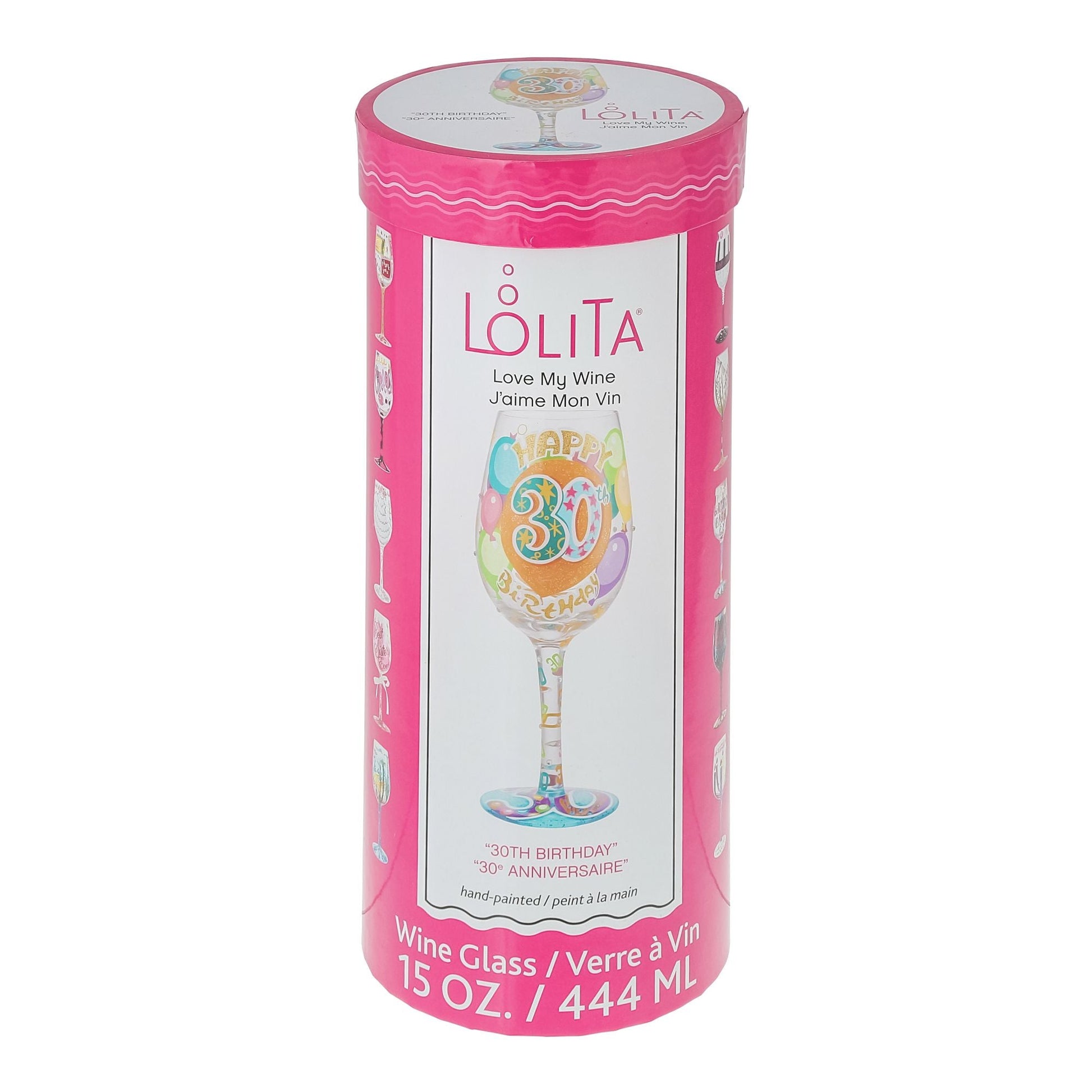 "Happy 30th Birthday" Hand-Painted Wine Glass, 15 oz.