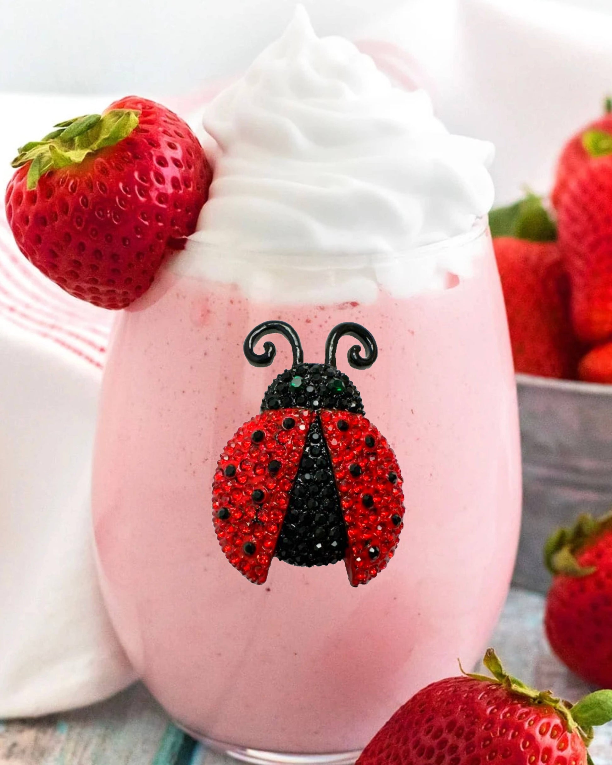Introducing our enchanting Ladybug Stemless Jeweled Wine Glass, where elegance meets whimsy in every sip! Delightfully designed and meticulously crafted, this wine glass is sure to infuse your gatherings with a touch of charm and sophistication.