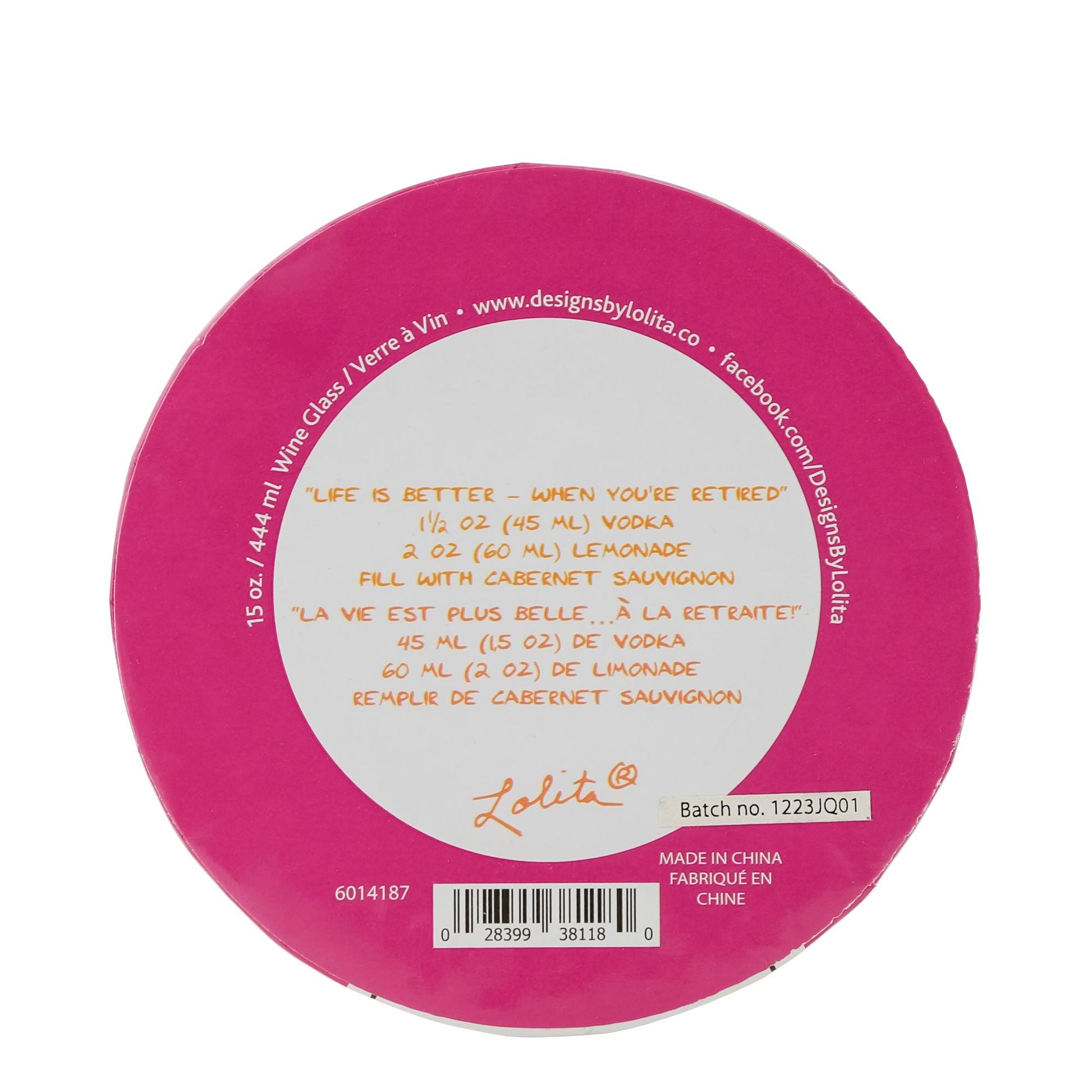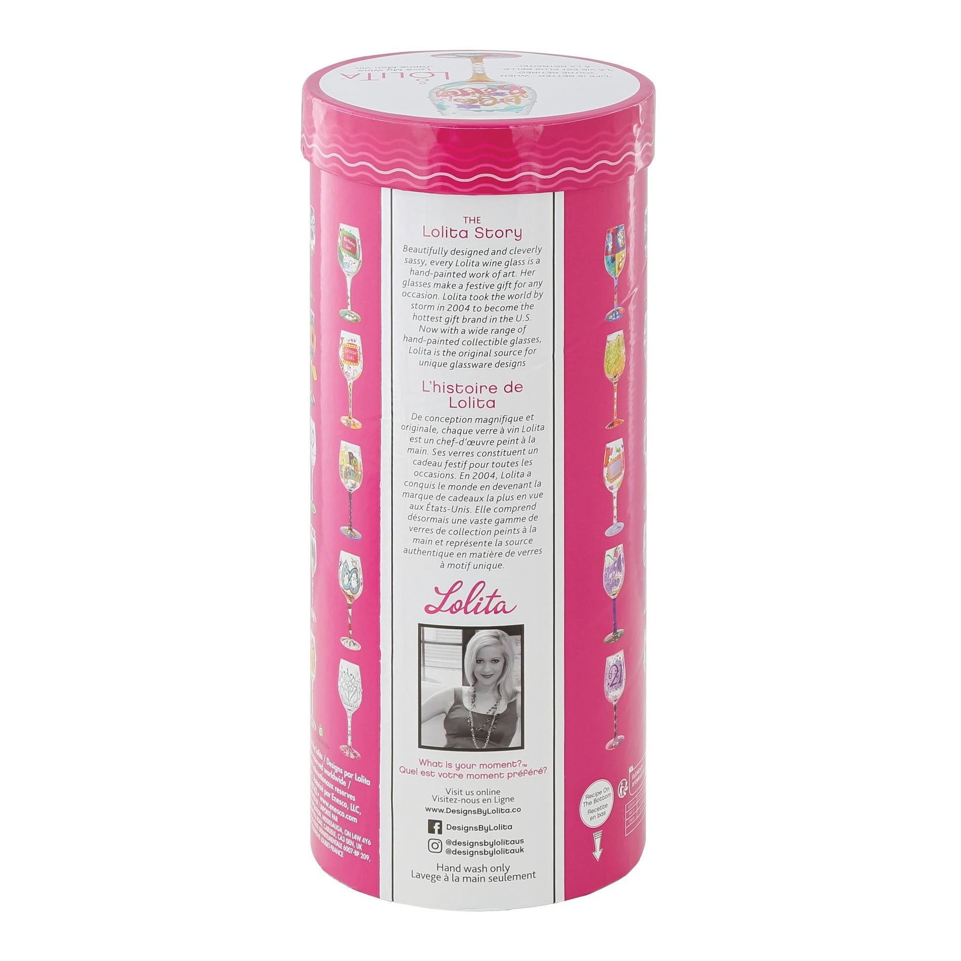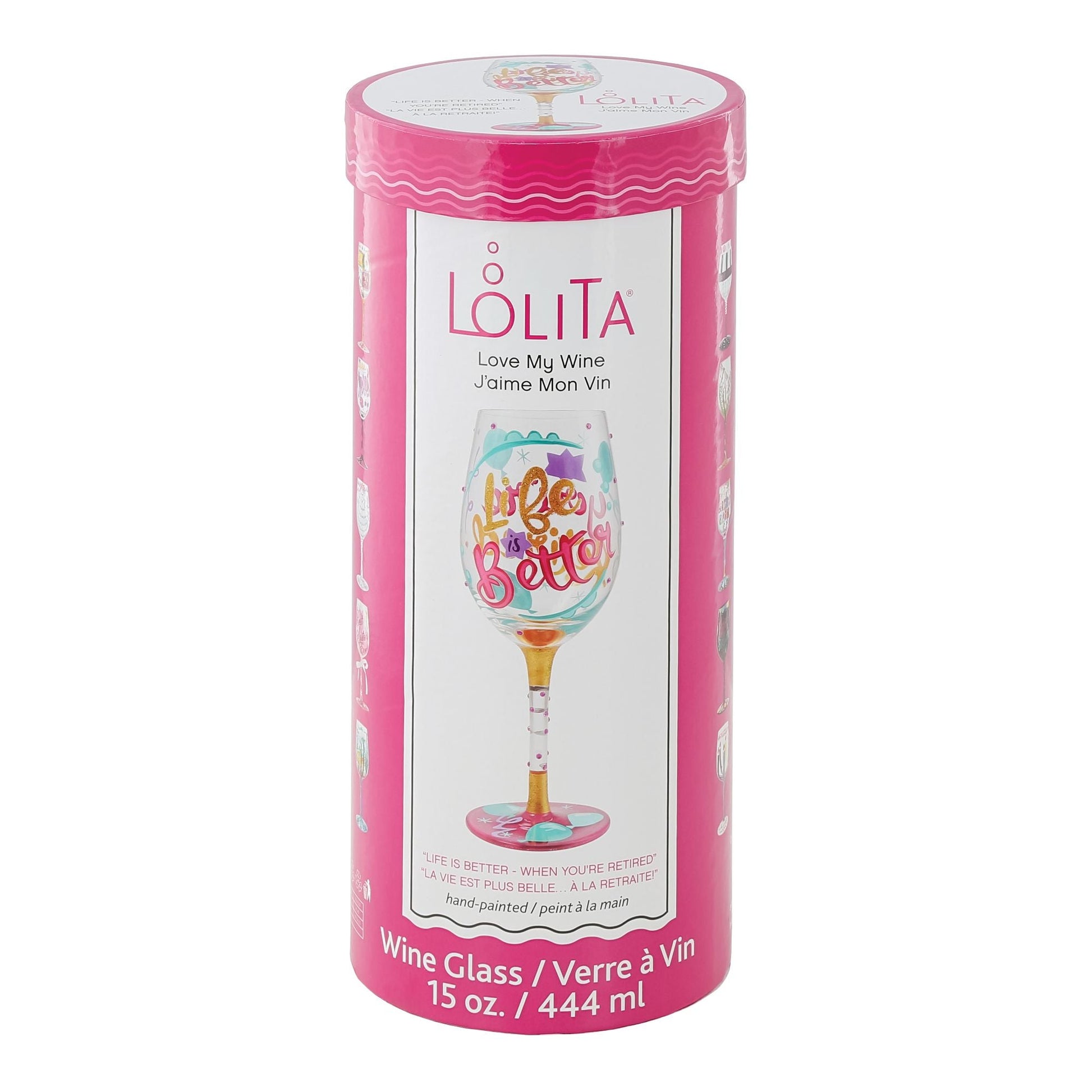 With balloons and and bedazzled crystal details, this brightly colored wine glass celebrates retirement. With glitter and gold, this cheerful cup toasts to new adventure and relaxation. Celebrate the next chapter of life with Lolita, cheers to you!