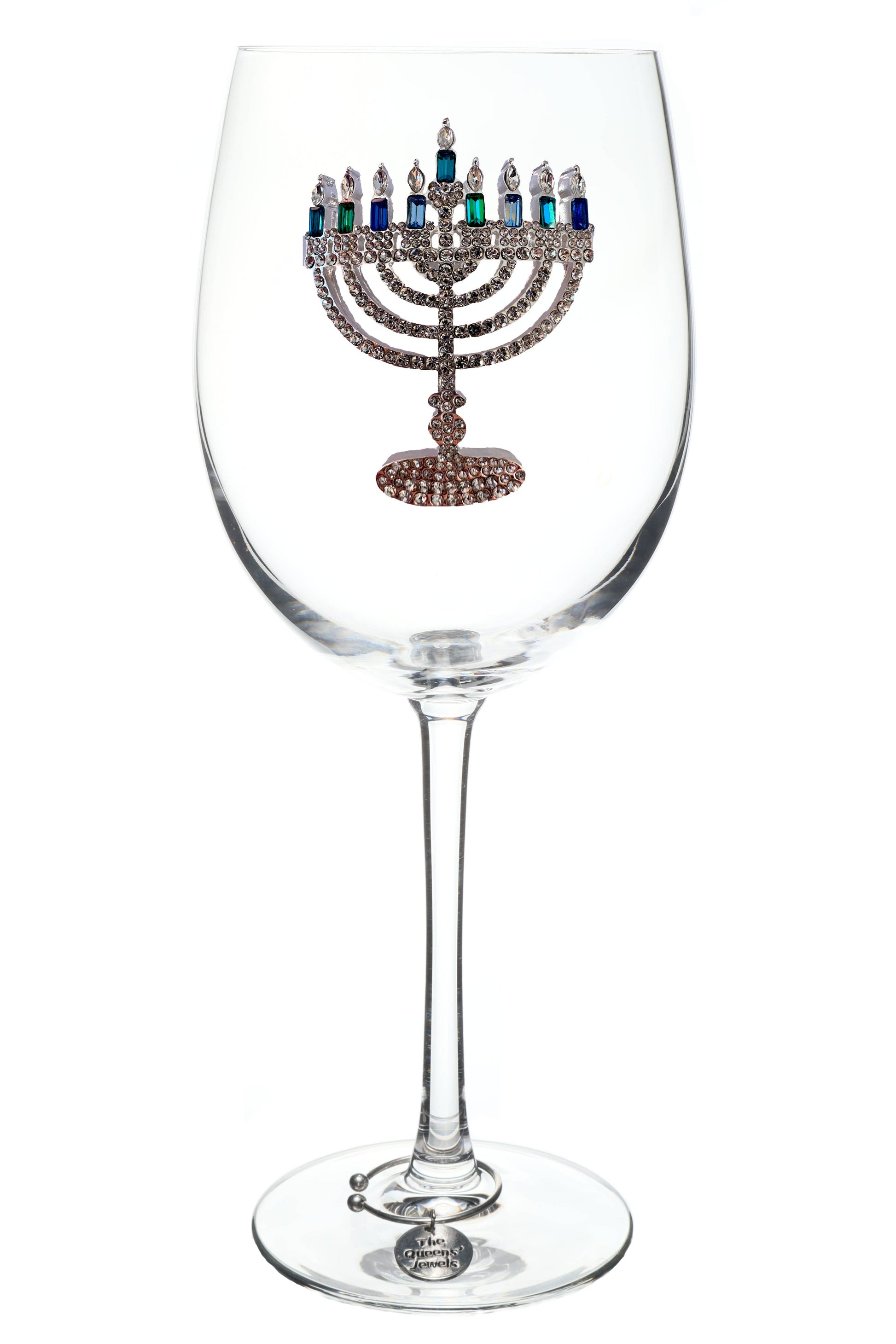 Menorah Holiday Jeweled Stemmed Wine Glass