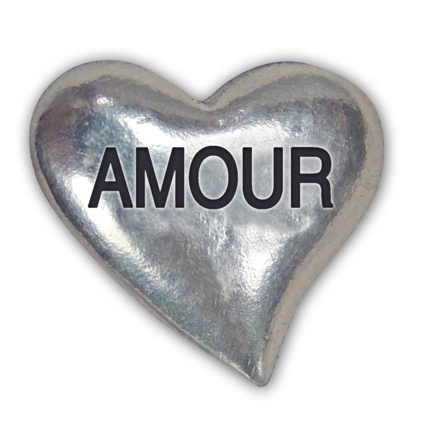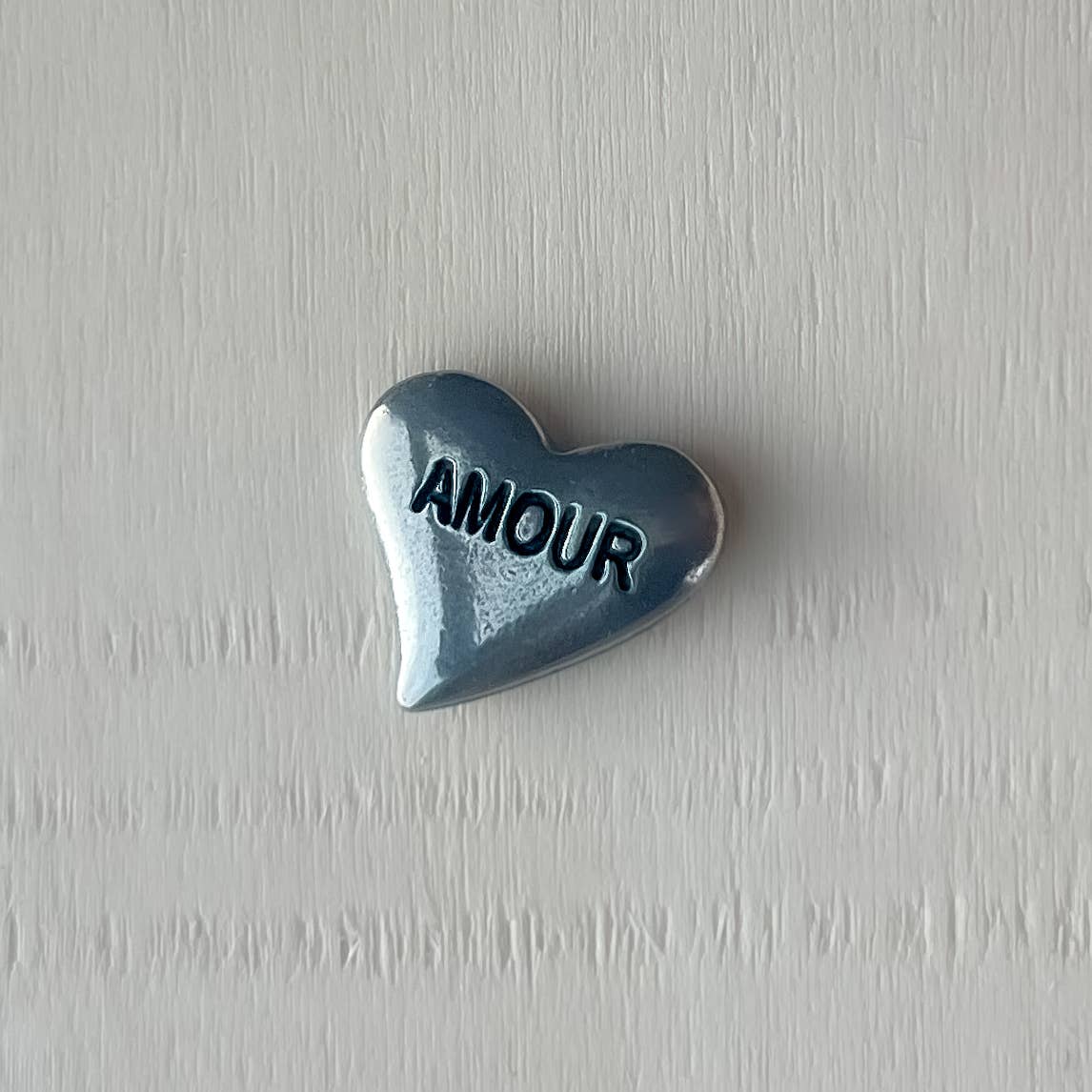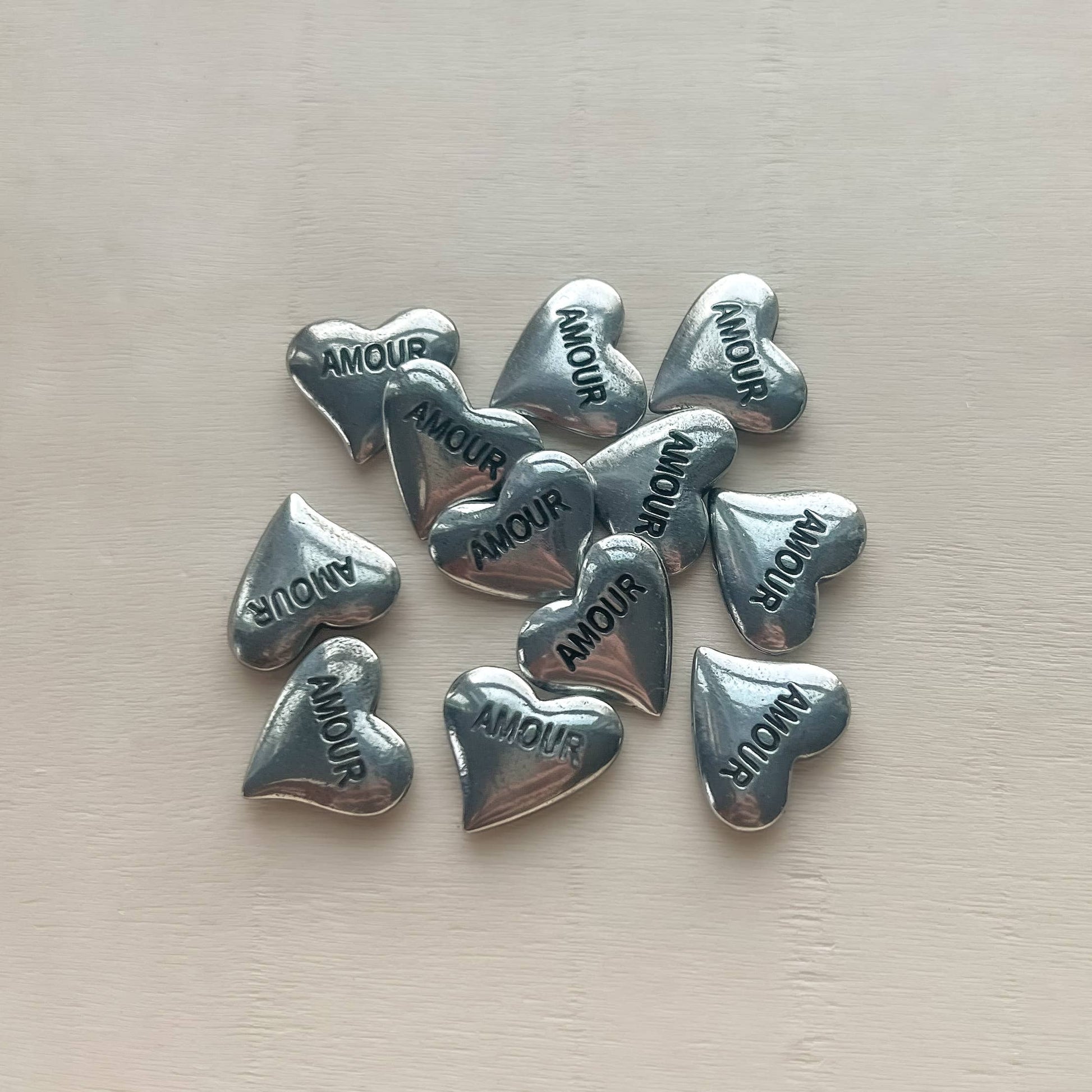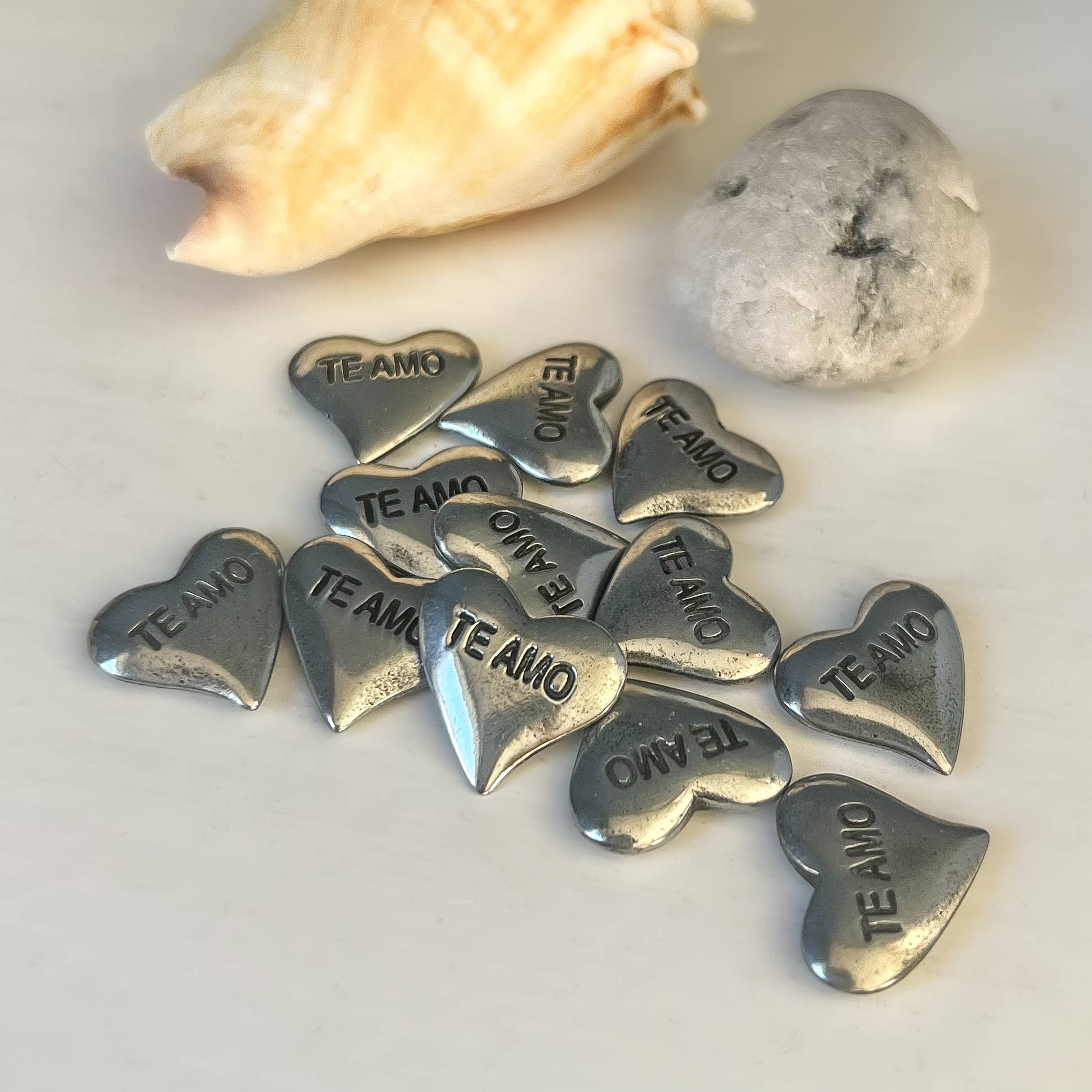 Heart shaped metal mini keepsake token. Blackened engraving. ¾”.