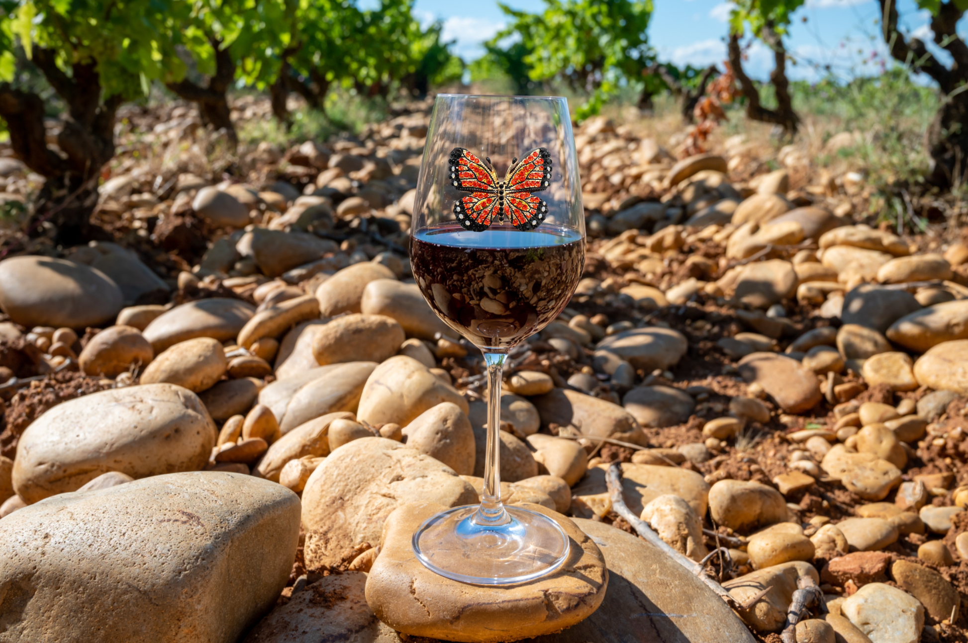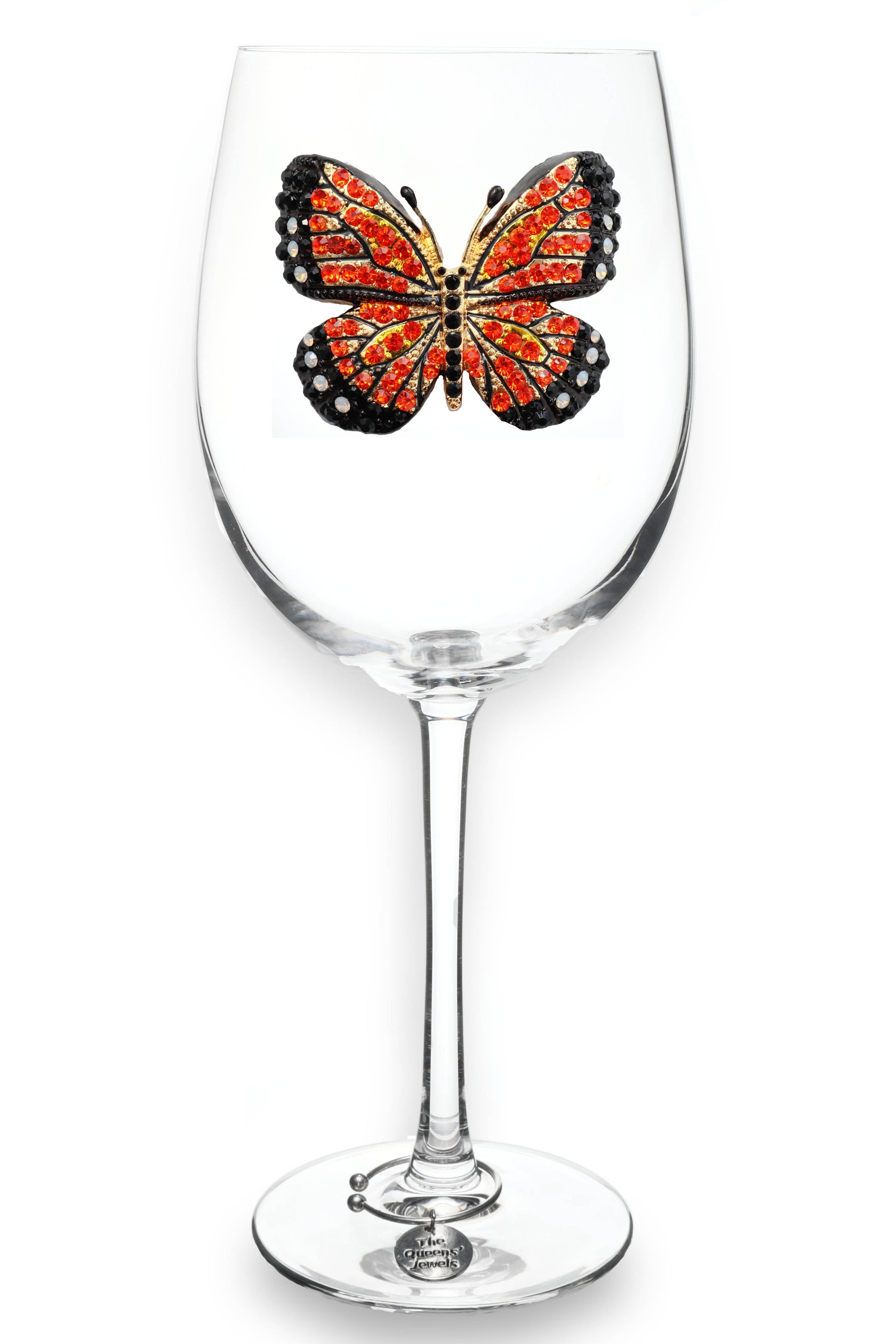 Monarch Butterfly Jeweled Stemmed Wine Glass
