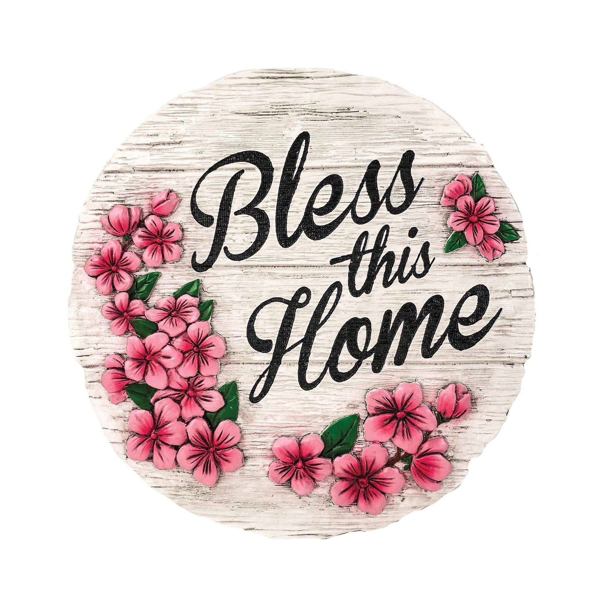 Hand-painted Bless This Home Stepping Stone can also be used indoors as a decorative wall plaque with included hardware for hanging. Features.For Indoor and Outdoor UseCan also be Used as a Decorative Wall PlaqueComplete with Hardware for Hanging