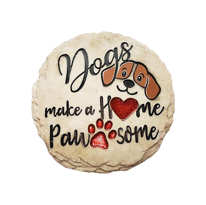 Dogs Make a Home Pawsome Stepping Stone. Our stepping stones cannot be beat! Place them in the garden or along the walkway as a cheerful welcome home. Since each stone comes with hardware on the back they can also be hung indoors as a wall plaque.