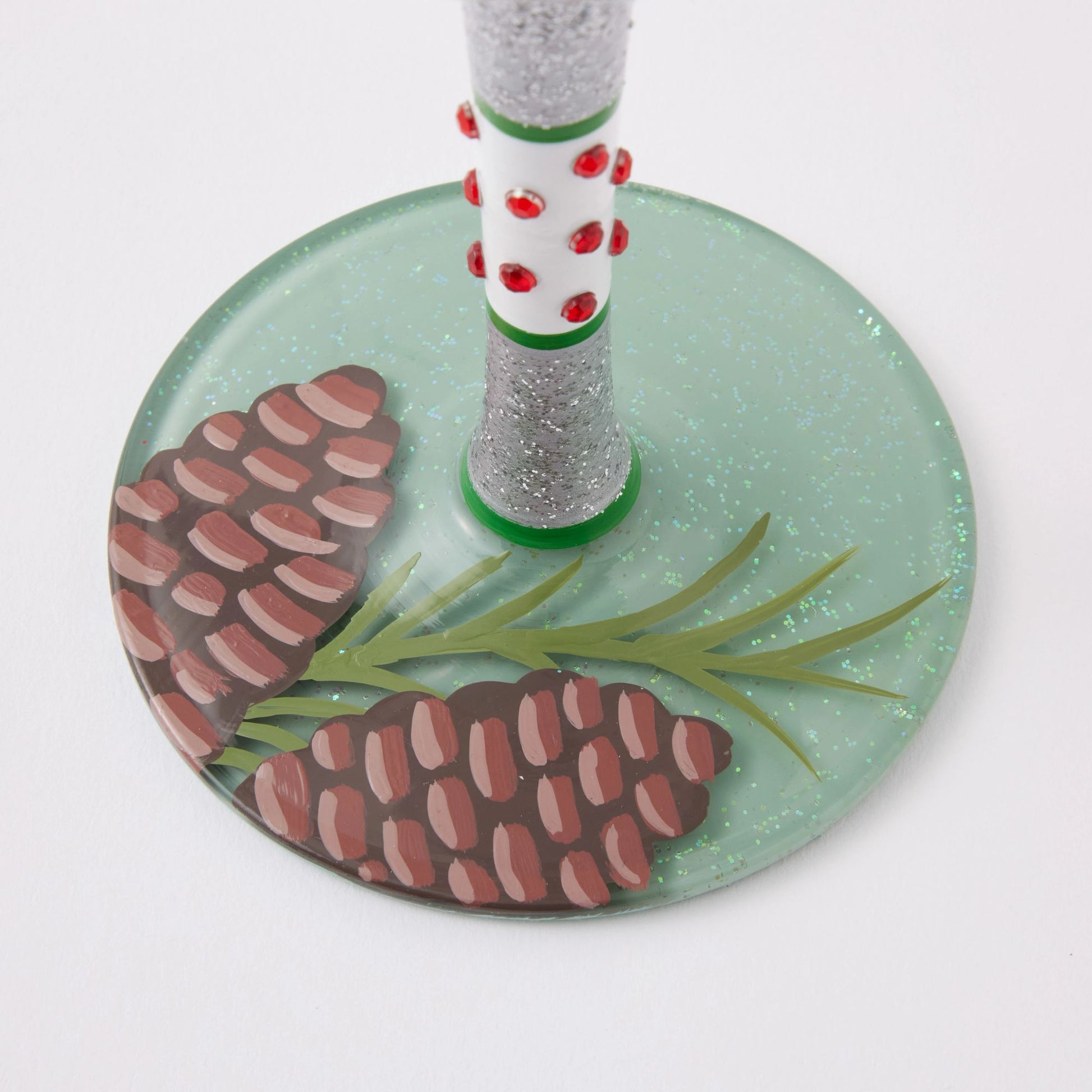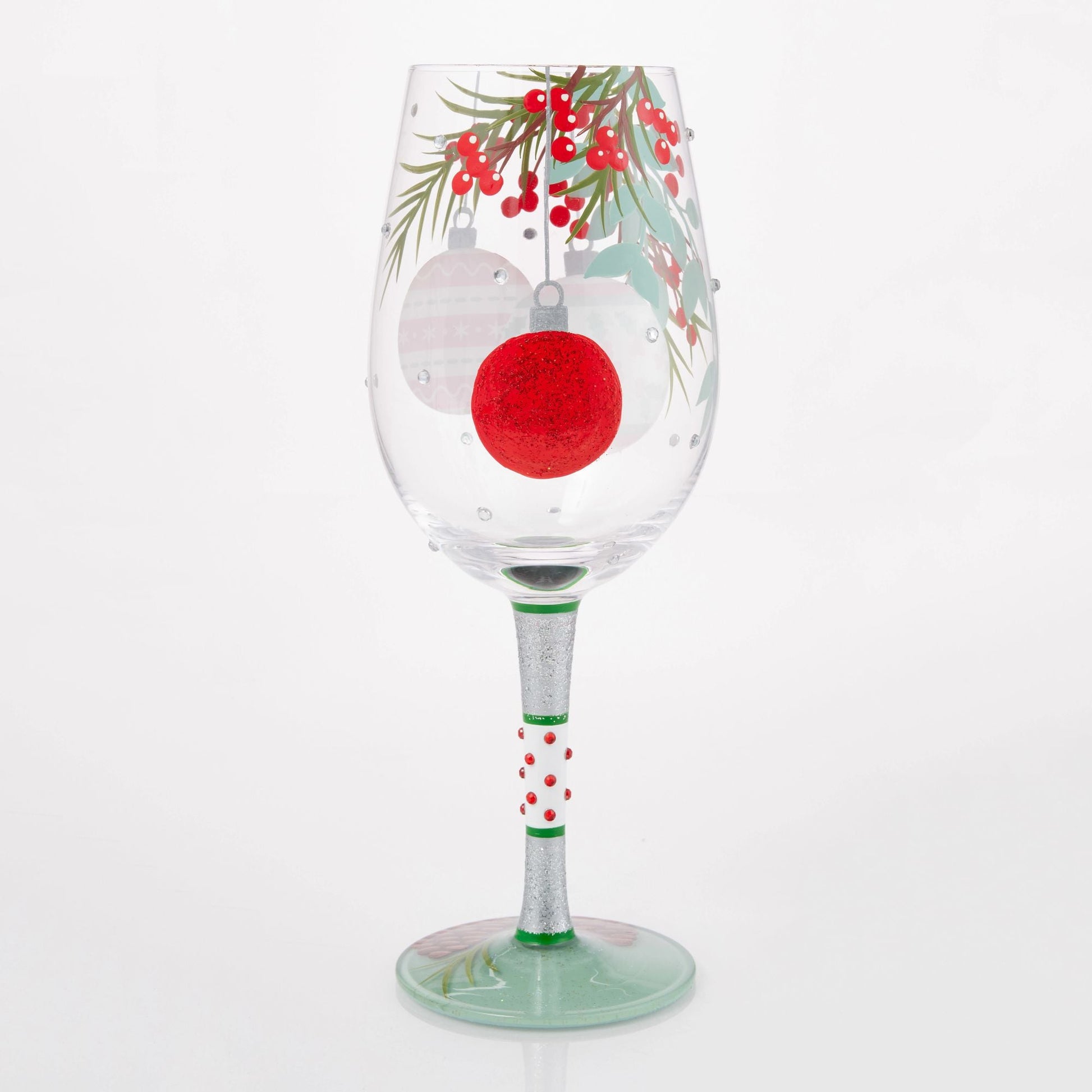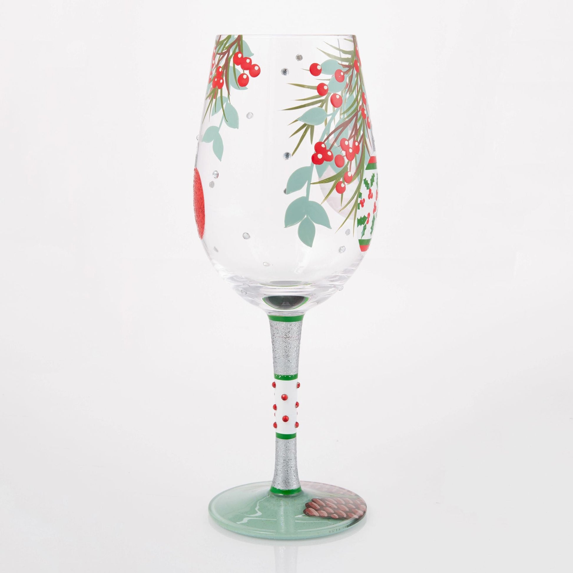 Celebrate the season in sparkling style with this enchanting Lolita wine glass, offering a glimpse inside a festive tree. Adorned with glittering ornaments, pinecones, holly leaves, and bejeweled details, it's a dazzling toast to holiday magic.- Warm Holiday Wishes from Designs by Lolita