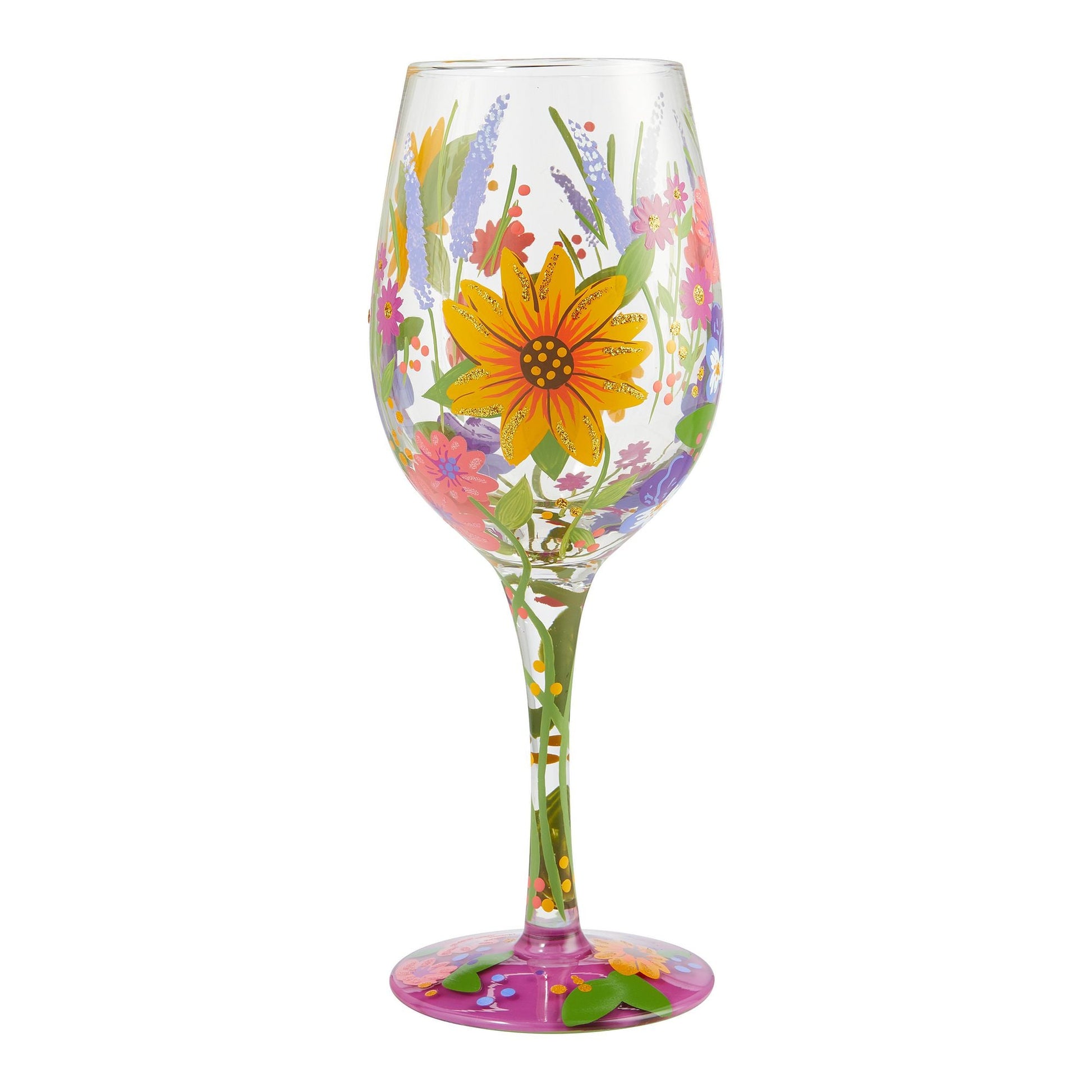 Wine in the Garden Hand-Painted Artisan Wine Glass, 15 oz.